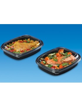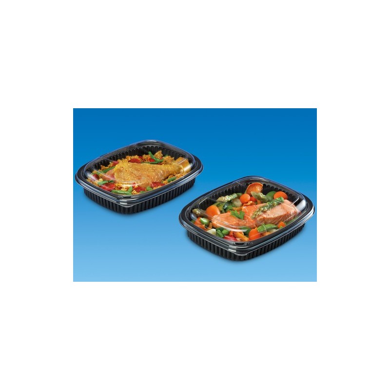 Bandeja doble para hostelería con tapa. Perfectas para mostrar alimentos combinados con sus salsas u otros complementos. Estas bandejas cumplen con la gastronorma y mantienen en perfecto estado los alimentos que se guardan en ellas. \n